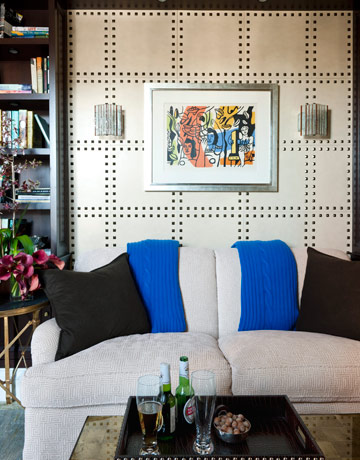 I love gold! Gold isn’t just for traditional rooms. You can mix it with modern pieces like that graphic art on the back wall.