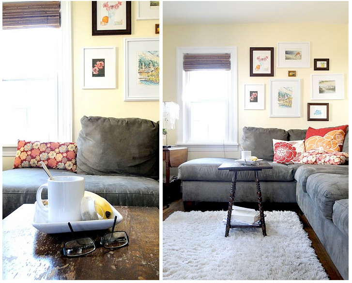 What a lovely home! The pops of orange are so cheery. Seeing the little bassinet in the living room made me smile, I can remember having a playpen in our kitchen when Calleigh was born 🙂 Beautiful, thanks for sharing! xx