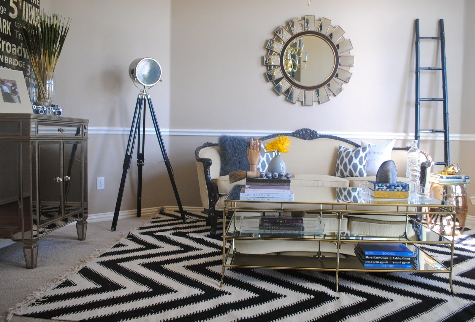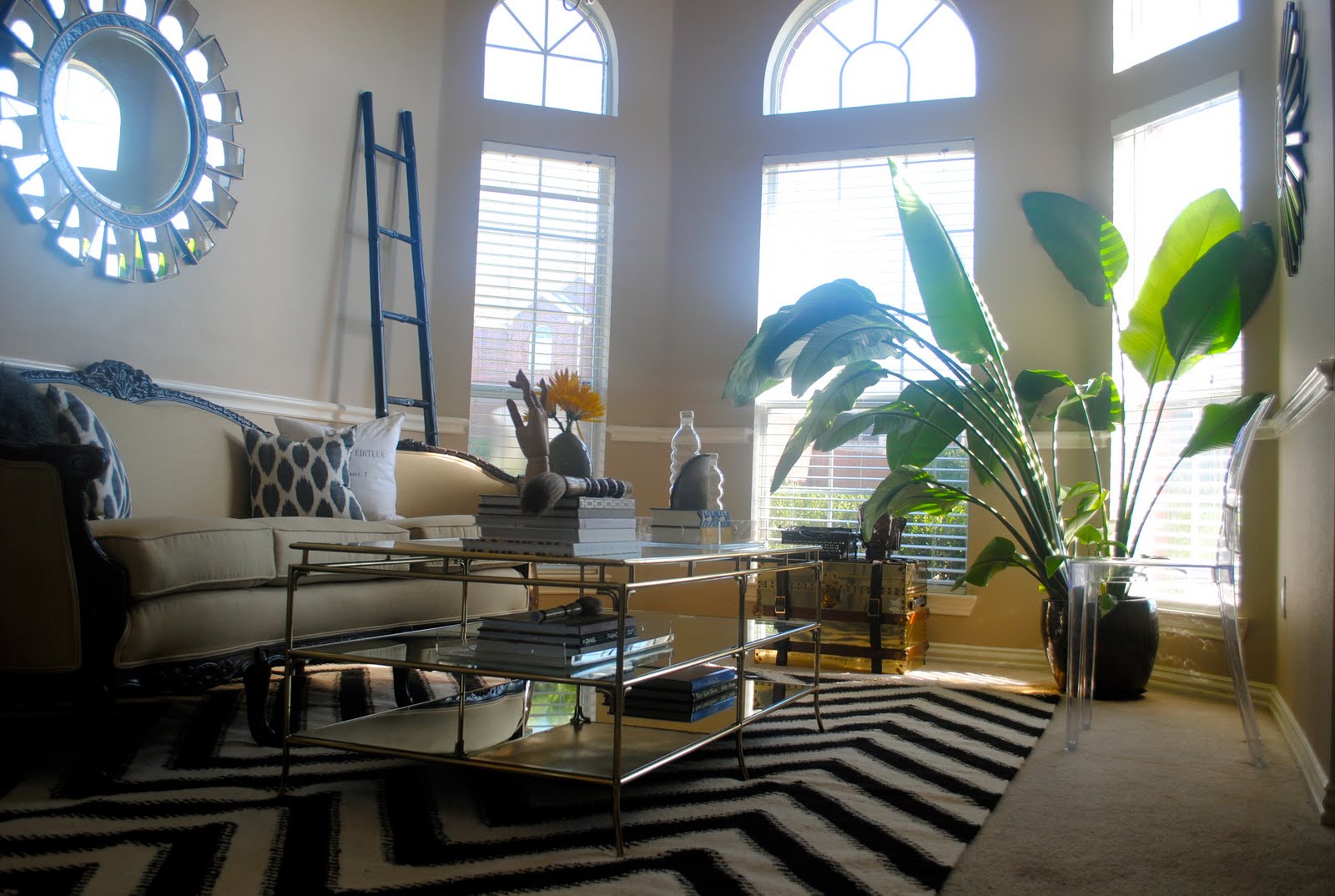 She describes her style as organic, modern chic with a touch of glam. Take a look at her beautiful living room.