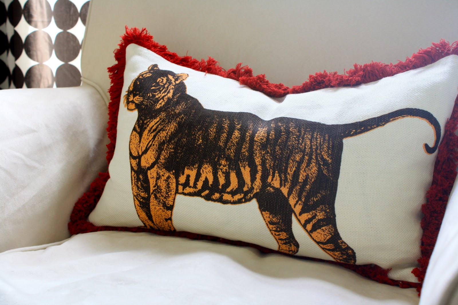 sooooo cute! i LOVE them, and that red on the tiger pillow looks great with the red shade. bravo! 🙂