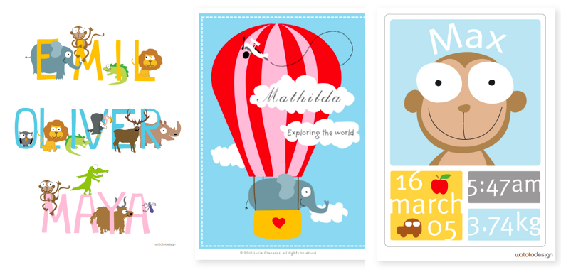 Watotodesign also personalizes prints to add that extra special touch to your child’s nursery wall. Great gifts for any occasion.