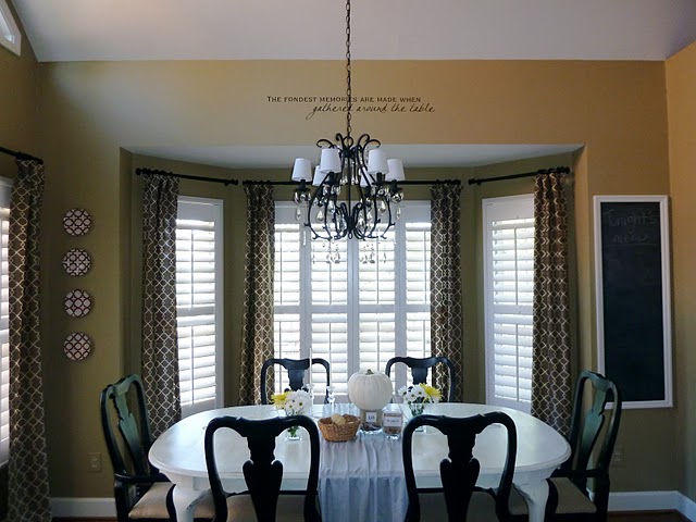 What a charming and eclectic home. I love all her curtain choices. All patterned fabric and so beautiful! And I really love that quote on the dining area.