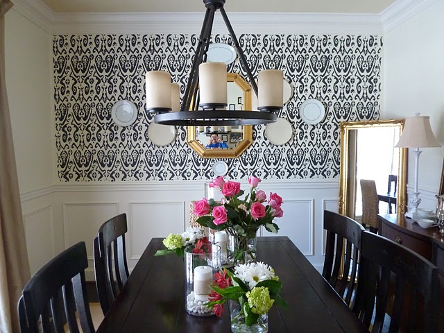 Wow! I love the mix of trendy (ikat) and traditional (paneling) in the dining room!