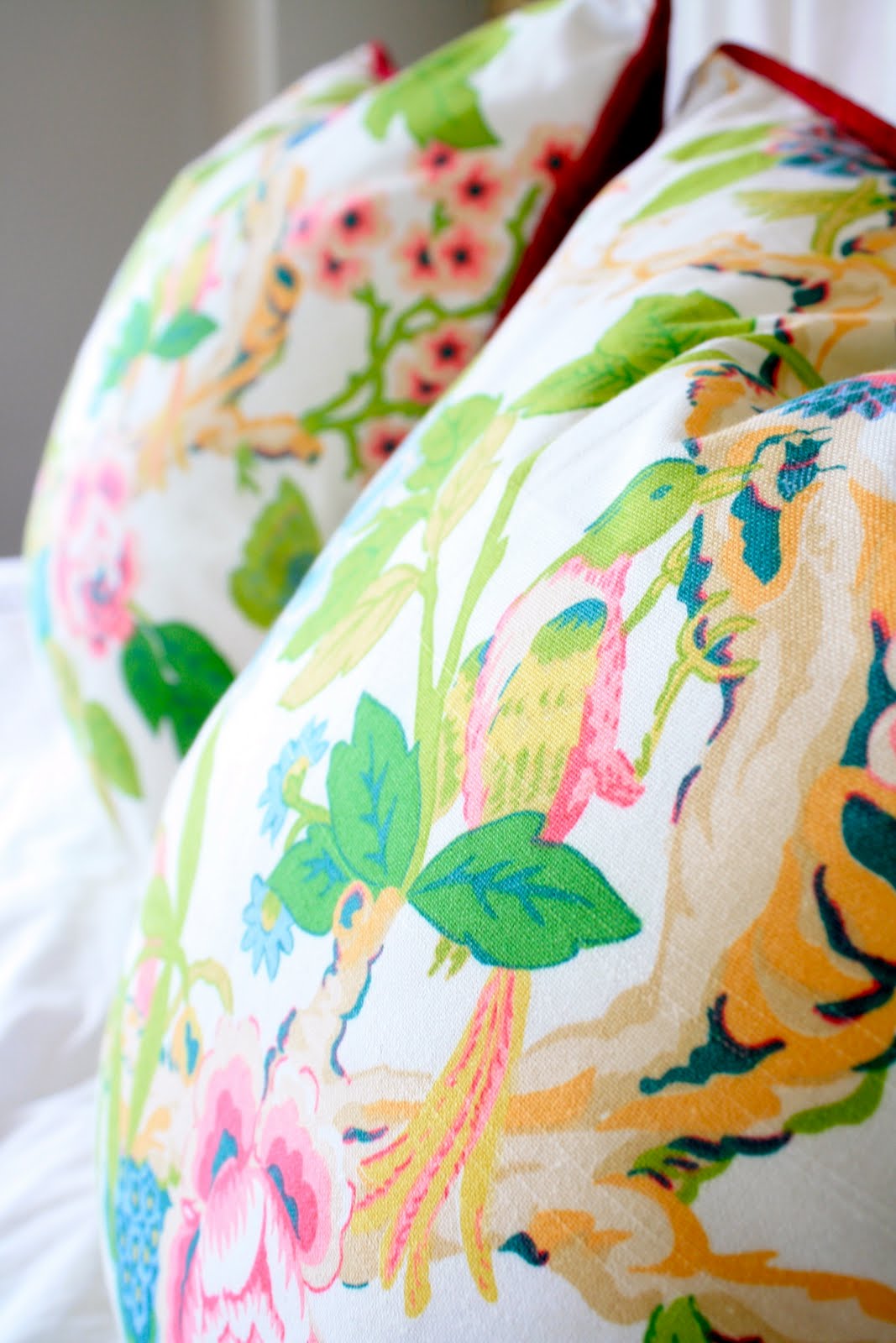 Those pillows are so tropical and bright!! Love them! The other fabric you're working with will look perfect with them!