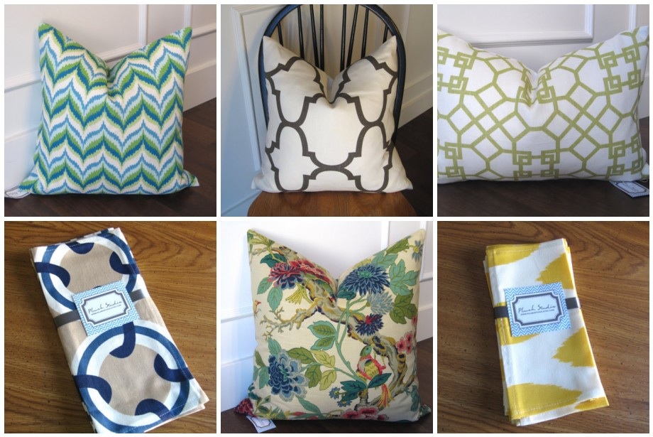 I love those pillows! Very tropical-chic. I also love those blue and cream napkins in Erin's shop. Gorgeous!