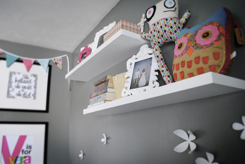 What a gorgeous little nursery! Love the bold colours against the grey! So perfect and pretty for a little girl 🙂