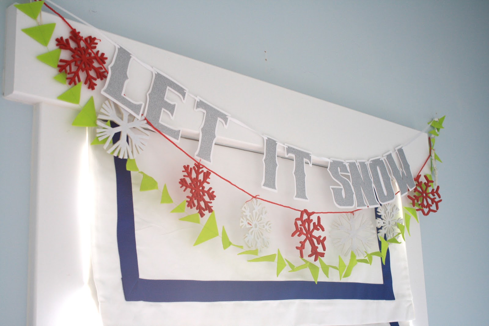 Let it Snow Banner from Devany’s Designs / Snowflake Garland from Target / Lime Triangle Garland from Land of Nod