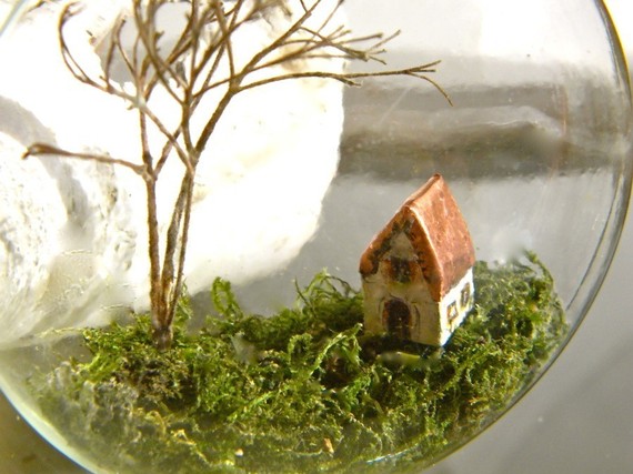 I think this little cottage under glass ornament is so magical. Found at this etsy shop.