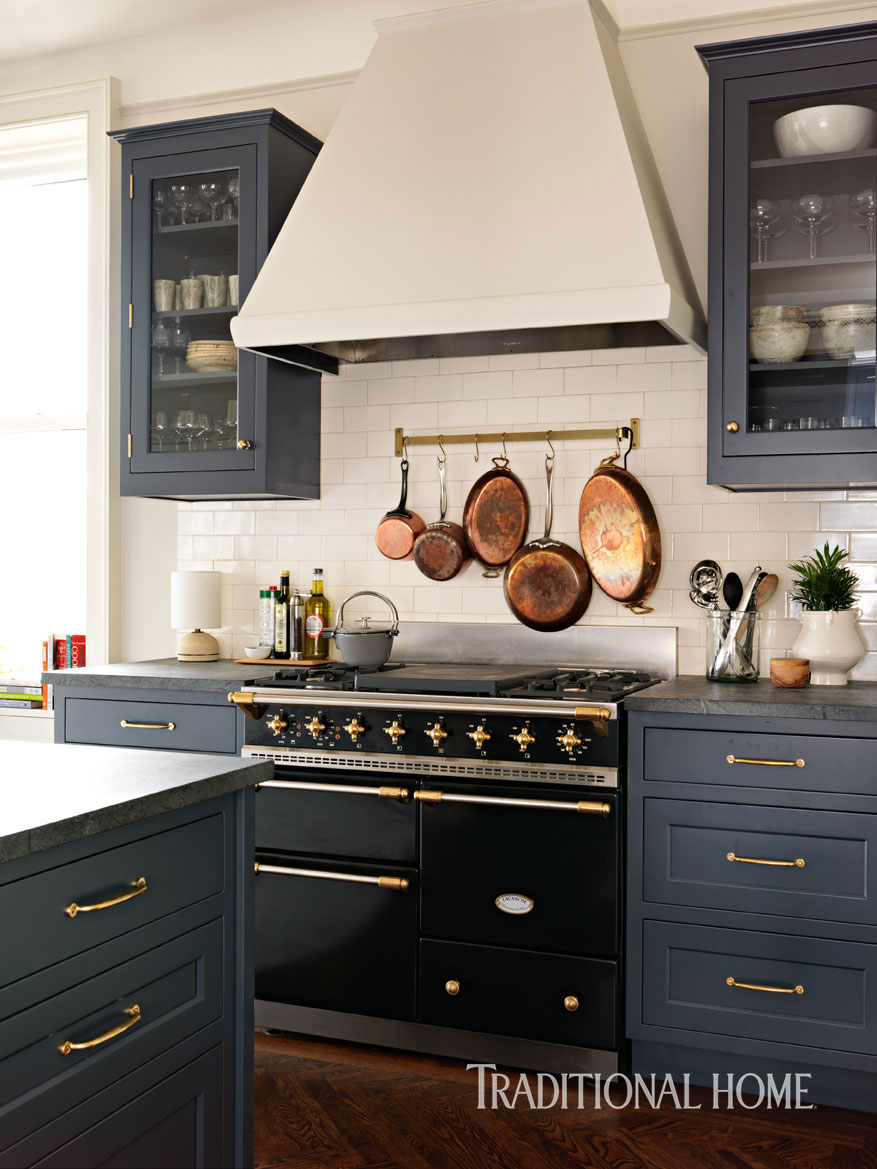 Image Source: Traditional Home  1// A dreamy navy kitchen  we all will envy 2//Just a touch of leather to spice up any room 3// A healthy snack to give you energy for your day 4//This chambray swing top has us ready for spring weather 5//  Such a soothing piece of art perfect for your home Our Pinterest account