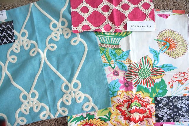 Some beautiful fabric samples arrived in the mail last week from Robert Allen. And since few things make me happier than pretty fabric combos I started playing around with my new samples. All of these are from Robert Allen are are available to order through me. Let me know if you are interested!