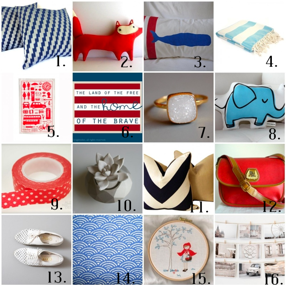 I love this time of year! I’m super excited about the 4th of July this week. I hope you all have some fun plans. Here are a few red, white and blue items to get you in the mood. 1. 2. 3. 4. 5. 6. 7. 8. 9. 10. 11. 12. 13. 14. 15. 16.