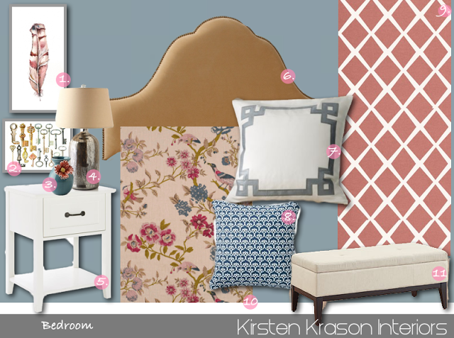 1. 2. 3. 4. 5. 6. 7. 8. 9. 10. 11.  I’ve created a pretty little blue and pink bedroom design board for you today.  I just love this fabric and I decided to base the whole room off of it. This Serena and Lily fabric would make sure pretty curtains.  The paint color is […]