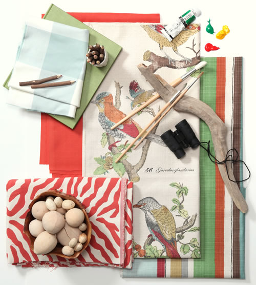 One of my favorite new collections from Calico Corners is the Allora Collection. I just love how all these fabrics look together.  I thought that this collection would make the sweetest nursery so I’ve designed one for you today!  Sources: fabrics, rug, roman shade fabric, pillow, side table, rocking chair, lamp, mobile