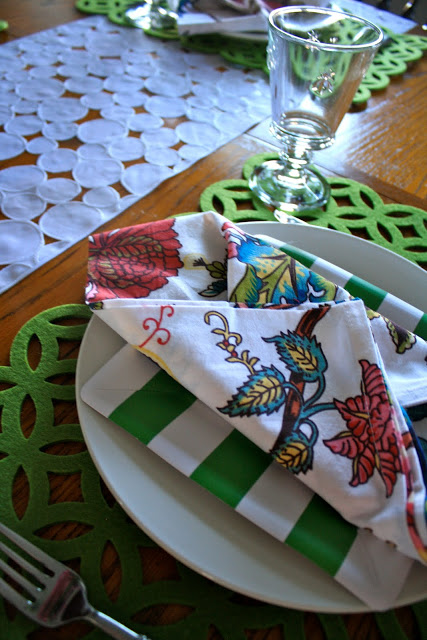 I picked up some beautiful napkins at Home Goods last week. I love the colors and the pattern. They are amazing! Get ready for your jaw to drop…. Joi turned hers into pillows. They look incredible in her living room. Incredible. If I didn’t already have a million pillows I might attempt the same thing.