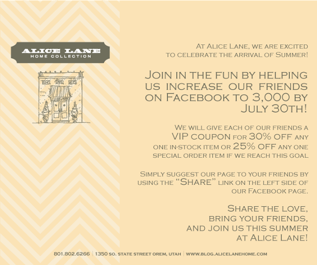 I can think of lots of things I would love to get with 30% off. Check out the Alice Lane Facebook page here!